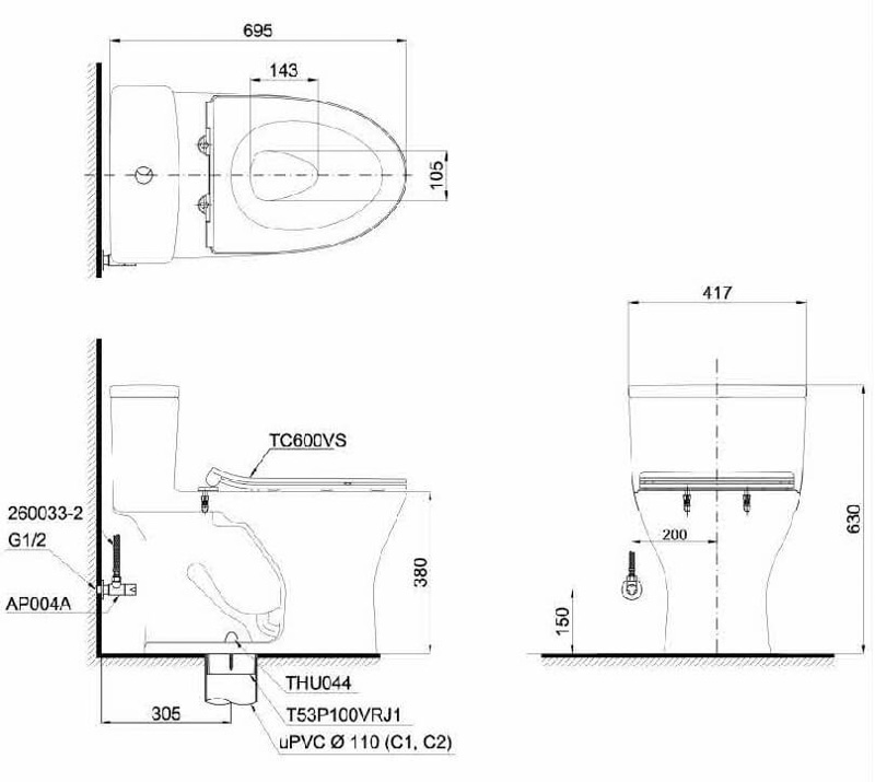 Bồn cầu nhà vệ sinh một khối, nắp đóng êm nhẹ TC600VS