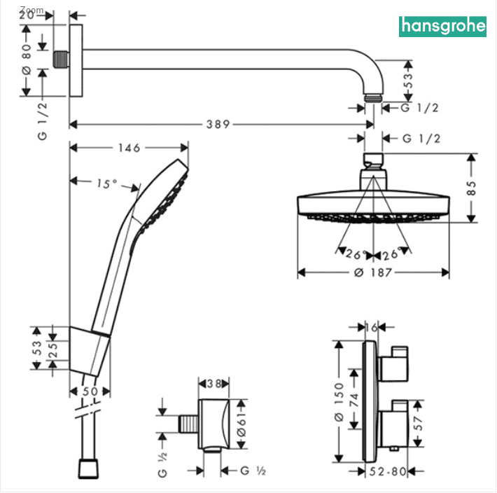 Đặc điểm: .Đầu sen Select S 180, 2 chức năng với tay nối Đầu sen 389mm .