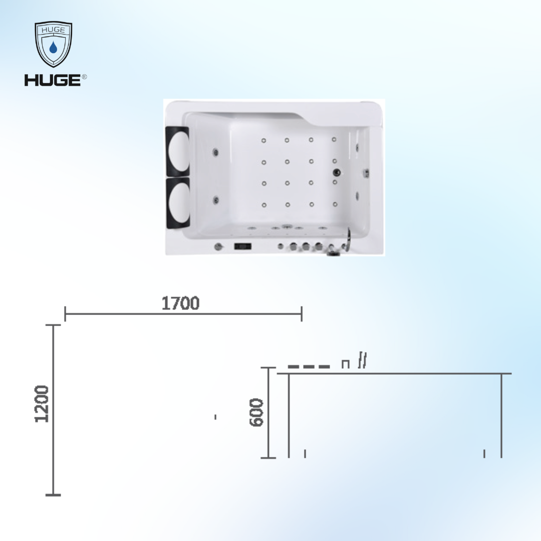 Bồn tắm massage đôi Huge H-BD3318 (L/R) là một kiệt tác về thiết kế, đem lại sự hiện đại và đẳng cấp cho phòng tắm của bạn. Với thiết kế tinh tế và màu sắc trắng tinh khôi, sản phẩm này sẽ là điểm nhấn nổi bật trong mọi phòng tắm. Kích thước rộng lớn 1700x1200x600mm cung cấp không gian đủ rộng cho cặp đôi tận hưởng sự thoải mái và thư giãn.