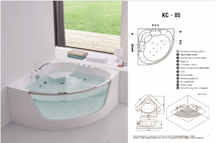 - Bồn tắm massage nhập khẩu KC05 với tính năng massage toàn bộ cơ thể bằng hệ thống massage thủy lực; tạo dòng nước nước xoáy vặn massage mang tới cảm giác thư giãn sảng khoái