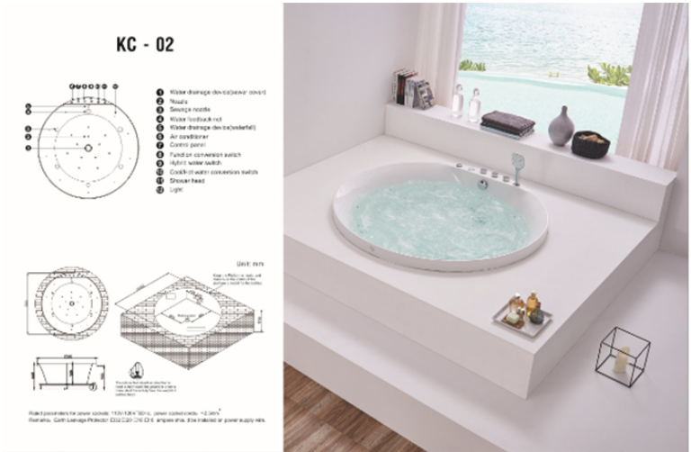 - Bồn tắm massage nhập khẩu KC02 với tính năng massage toàn bộ cơ thể bằng hệ thống massage thủy lực; tạo dòng nước nước xoáy vặn massage mang tới cảm giác thư giãn sảng khoái