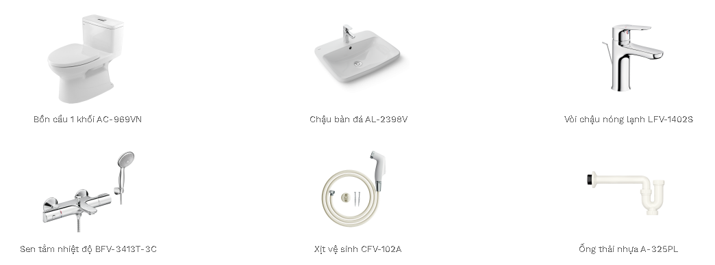 Thông tin sản phẩm: COMBO AC-969VN – Thiết kế phù hợp với không gian phòng tắm vừa và nhỏ. Điểm nhấn: Bồn cầu 1 khối giá rẻ nhất của INAX – Kích thước nhỏ gọn Sen tắm cây nóng lạnh THÔNG TIN CHI TIẾT – Các sản phẩm trong COMBO