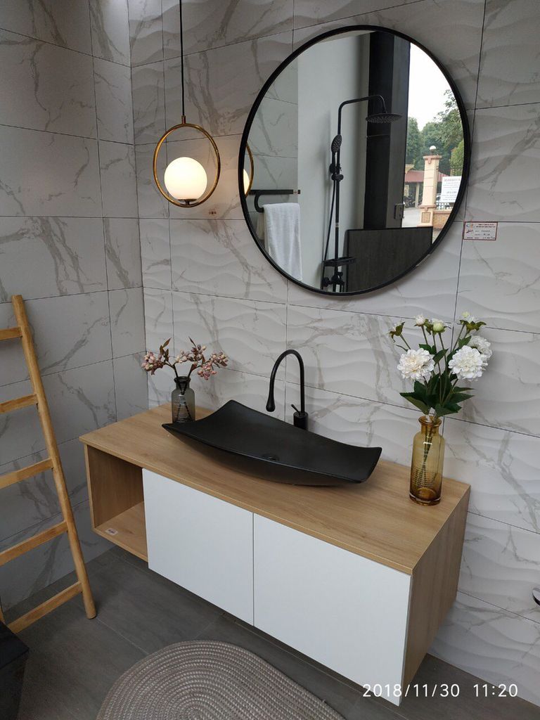 Gương tròn Optima là mẫu gương đơn giản mà tinh tế sang chảnh, đặc biệt khi phối hợp với nội thất tone đen trắng.