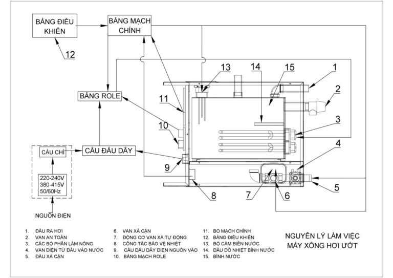 Bước 3 đấu điện và điều khiển cho máy xông hơi