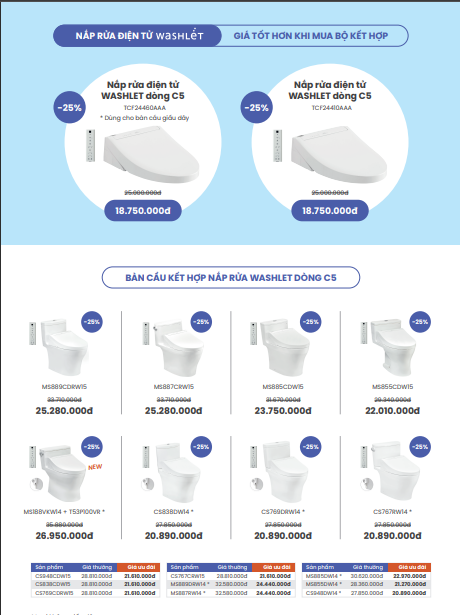 Nhanh chân lên! Chương trình khuyến mãi Mùa Hè đã đến, mang đến cho bạn ưu đãi đặc biệt - giảm đến 25% cho các sản phẩm vệ sinh TOTO!