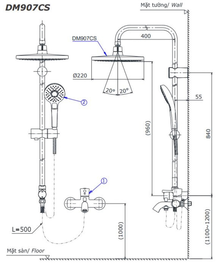 Bản vẽ kỹ thuật của Sen cây TOTO DM907CS