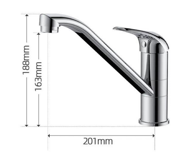 - Tổng chiều cao vòi là 19cm, phù hợp với phần lớn chậu rửa bát trong gia đình. Thiết kế đặc biệt tạo nên điểm nhấn cho sản phẩm.